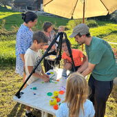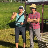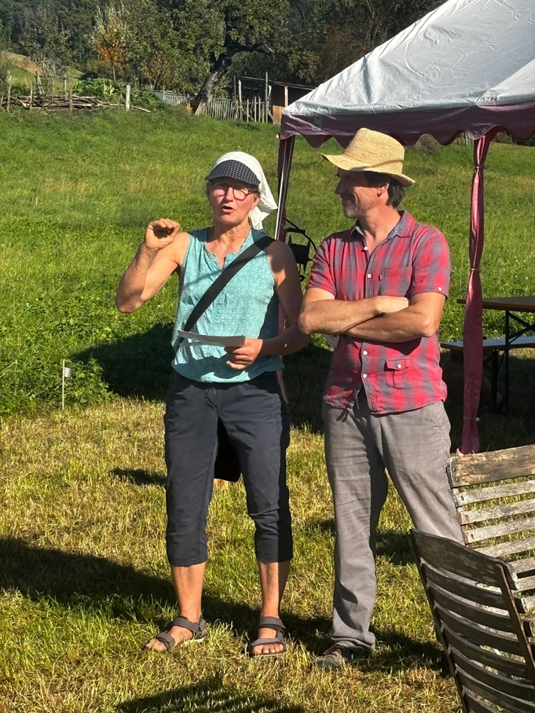 Der Nachmittag begann mit einer Hofführung. Bettina und Daniel führten entlang von "Energielinien" durch Kraut und Rüben, zu den Schafen, über die Obstanlage bis zum Kompost – "Kompost is hot"! Ausgangspunkt einer Weltbetrachtung, hier in der Alten Bäckerei Waltenstein exemplarisch erlebbar.
