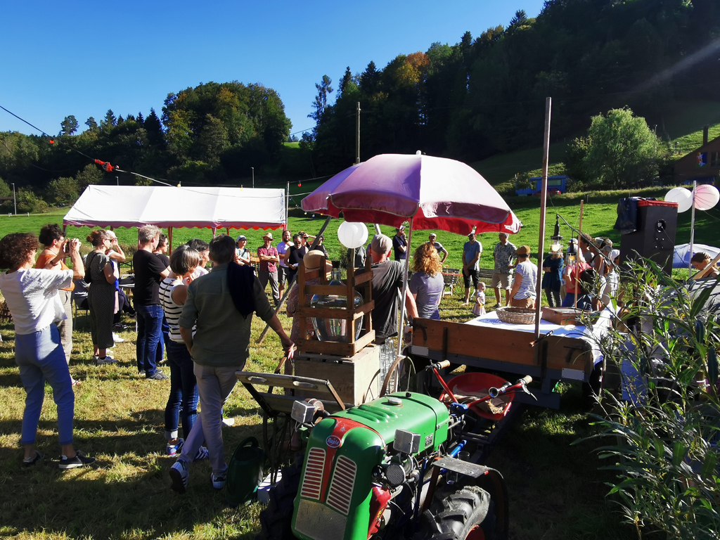 Die Tatsache, dass alles, was uns Menschen als Lebensenergie dient, mit der Photosynthese beginnt – welche die landwirtschaftliche Arbeit als unterstützende Care-Arbeit verständlich macht – wird eindrücklich erlebbar und liefert Stoff für den anschliessenden Apéro. Es wurde geplaudert, gelacht, gedacht – hinaus in die Welt und wieder zurück.